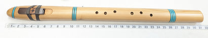 This flute is adorned with painted turquoise rings to dress up the flute's body.